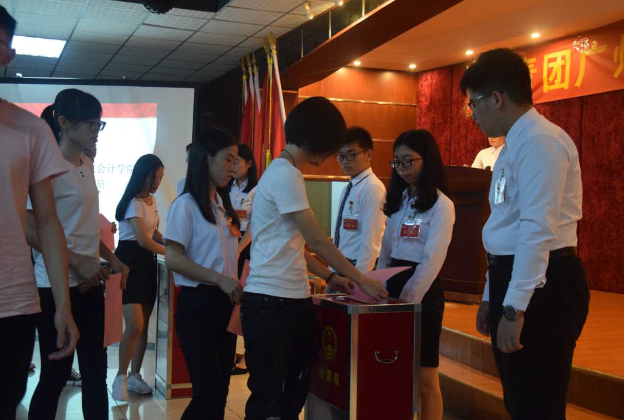 共青团广州商学院万象城allwincity官网第六届委员会候选委员依次上台竞选演讲。经过无记名投票,本次大会选举产生了李静、邵梓晴、张振华、廖秀娟、谢怡珊、王晶、吴浩渟、何思共八名第六届委员会委员。