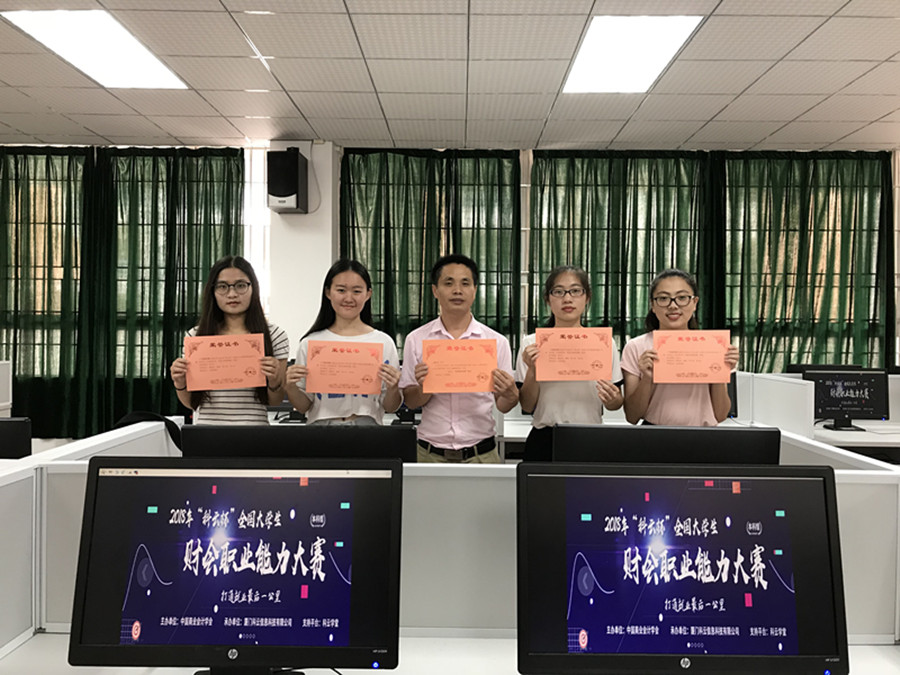近日,由中国商业会计学会主办,厦门科云信息科技有限公司承办2018年“科云杯”全国大学生财会职业能力大赛全国网络选拔赛圆满落下帷幕,总共近300所院校参与了本次大赛,400多支团队(全国3000多支团队参加校内选拔赛)经过激烈的角逐,由范时云老师指导的万象城2支参赛队伍均获奖,由赖俊如、梁茵、张小佳、朱宝仪四位同学组成的广商1队荣获大区赛南区(本科组)二等奖,由王微微、陈晓萍、陈舒婷、李妹君四位同学组成的广商2队荣获大区赛南区(本科组)三等奖,范时云老师荣获优秀指导老师称号。