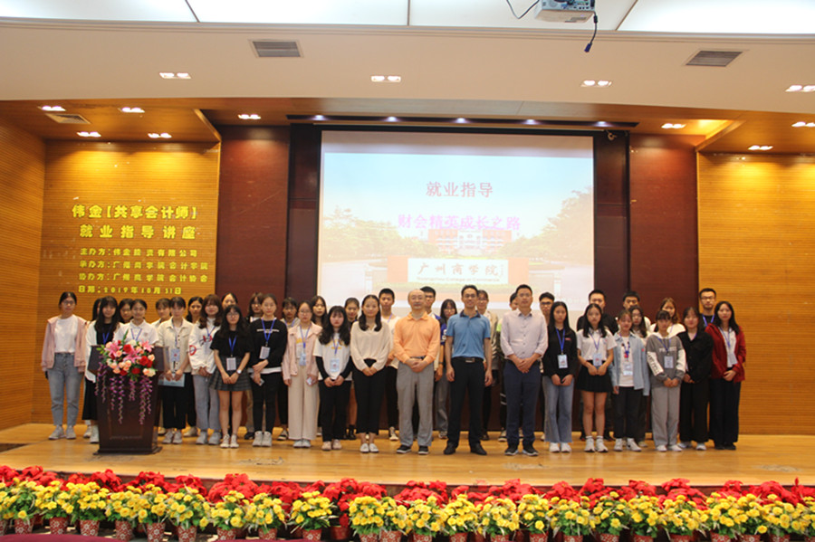 为了让更多的在校学生了解到更多的就业信息,面试技巧。广州商学院会计协会于2019年10月31日在第四教学楼第一报告厅举行了伟金【共享会计师】就业指导讲座。出席本次活动的嘉宾有伟金投资有限公司董事长陈耿升、伟金投资有限公司副总经理周新育及会计协会指导老师赵聪。