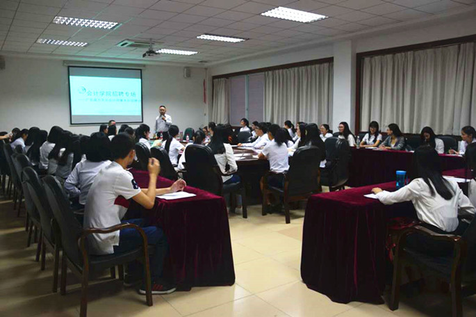 宣讲会上,王所长介绍了事务所的基本情况,并对本次招聘岗位的基本要求、福利薪酬及面试流程等内容进行了说明。宣讲会结束后,60位以3-5人为一组分批进行面试,毕业生首先进行一分钟的自我介绍,回答企业提出的若干问题。接着毕业生针对南方天元会计师事务所的工作岗前培训、晋升空间、工资薪金、是否出差等疑惑的问题进行了提问,王所长都给予了真切的回答,使应聘者能够更深入地了解事务所,并争取获得此次实习机会。