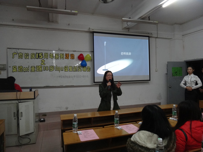 12月7日晚上,会计系在B105主办了广州商学院校庆15周年系列活动之“足迹”暨“重返18岁slogan”主题活动颁奖会议,会计系14级辅导员吴梦老师和院系理事长出席了会议,活动由学习会会计系分会承办。