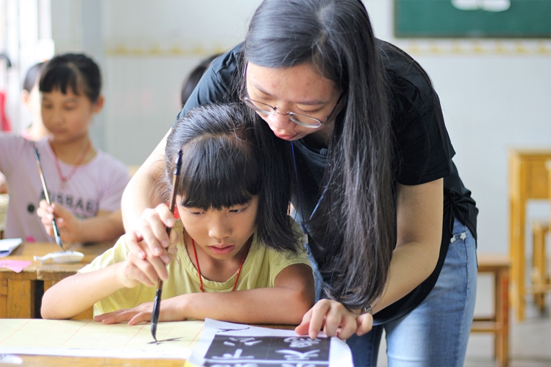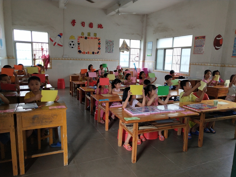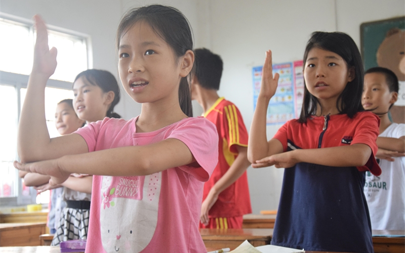 礼仪操结束后便进入课堂教学时间。按照不同的年龄段,本次三下乡支教分为求真班、立信班、笃行班3个。