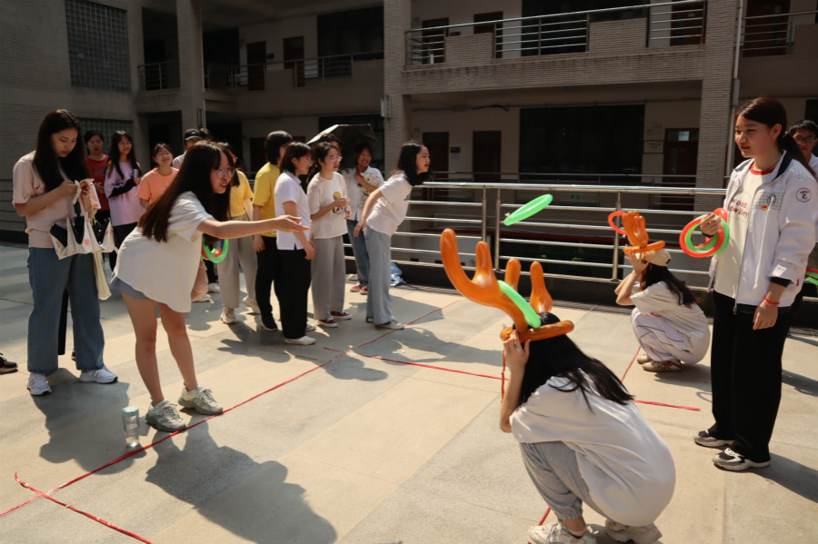 本次活动共有“摸石过河”“‘跳’跃思维”“迎‘篮’而上”“鹿角套圈”四个环节,每个环节都将学校理念和发展特色融入到问答中。活动现场吸引了众多学生参与,在“摸石过河”“‘跳’跃思维”“迎‘篮’而上”的个人游戏环节,学生尽情展现自我风采,展现了广商学子的健康形象;在“鹿角套圈”的合作游戏环节中,同学们俩俩组队,共同完成游戏任务,不仅考验了团队间的默契程度,更展现了广商学子团结友爱、互相合作的良好风貌,增强了大家的集体荣誉感,磨砺了团结协作的精神品质和努力拼搏的意志品格。趣味运动会妙趣横生,将趣味融于个人和团队中,既考验团队合作精神,又充分展示个人风采。