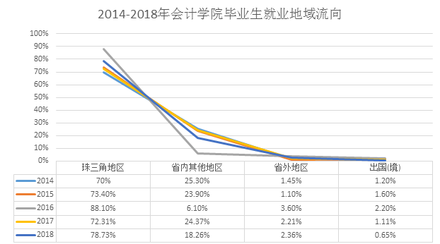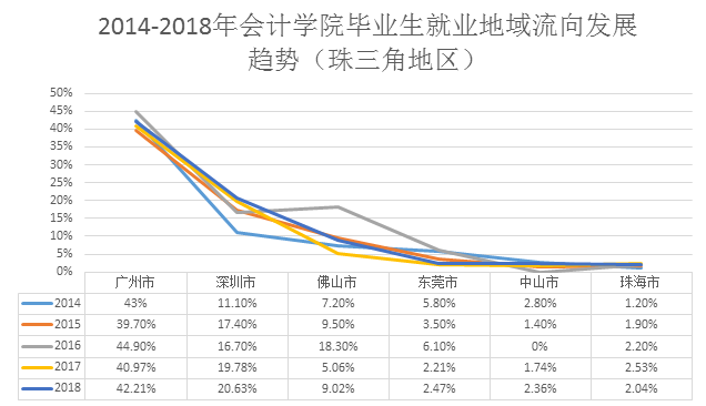 图1-4 2014-2018年万象城allwincity官网毕业生就业地域流向发展趋势(珠三角地区)